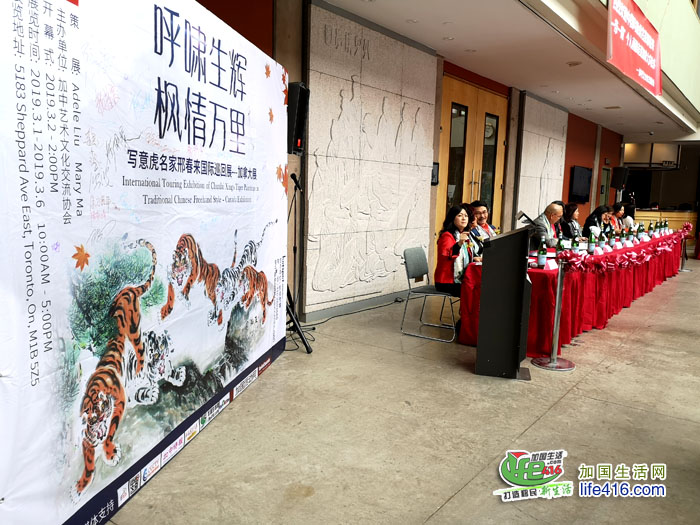 【加国生活网】2019年3月2日,中国著名的写意虎画家邢春来国际巡回展第一站加拿大正式启动,这是邢春来先生国际巡回展首展在多伦多,中午2点,画展在大文化中心举办开幕式,整个一楼大厅里座无虚席,很多人都站在会场的二侧。