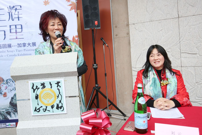 加中艺术文化交流协会作为主办方,刘云会长在发言中指出:“2019年春节期间,我们协会有幸为中国著名写意虎画家邢春来先生策办“呼啸生辉、枫情万里”写意虎国际巡回展-加拿大展,亦感谢所有在大雪纷飞的日子里赶来观展的嘉宾。绘画是世界语言,不仅怡情养性,更能延伸人生命的长度和宽度,也展示我们对美的渴望。所以我们因画相聚一堂,共同来欣赏邢春来先生的画作。邢春来先生此次带着他的代表作前来加拿大举办“呼啸生辉、枫情万里”写意虎画展,相信将给多伦多民众带来一场回味悠长、赞叹不已的艺术盛宴。”