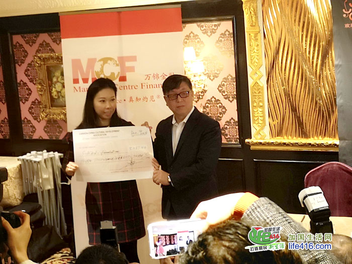 由领先教育的学生组成的义工为残疾人演出募捐的慈善款最后交给主办方高总,加中发展文化协会又主动募捐了同样的款3千多元今天交给了多伦多病童医院,医院的代表说,孩子在病中,音乐也是一种帮助治疗的方法,通过唱歌、跳舞达到活动的效果,同时会分散孩子疼痛的注意力。