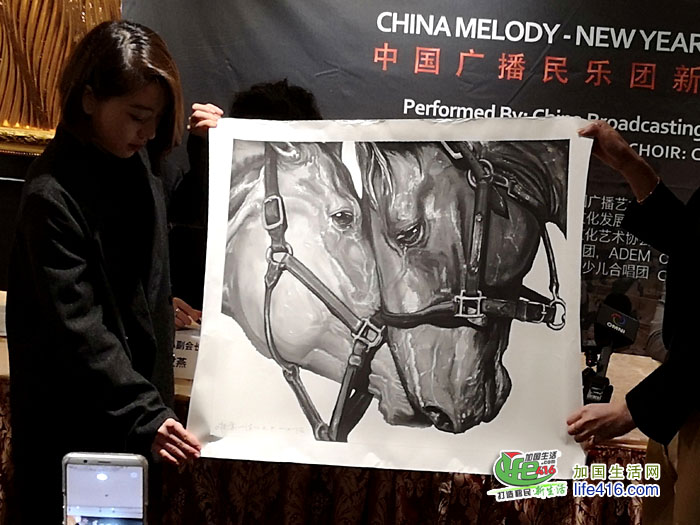 新闻发布会结束前,高总拿出三幅著名画家孙浩先生的作品《相濡以沫》进行媒体抽奖环节,画家孙浩有着自己对马的独特视角,他笔下的马随着他走进世界,现在作品被中国美术馆、鲁迅美术学院、中央美术学院、台湾山艺术文教基金会、香港盈科艺术中心、香港展览中心、宇辰美术馆、深圳关山月美术馆、岭南美术馆、玄如艺术以及美国、欧洲、日本、韩国、私人藏家收藏。这幅《相濡以沫》的作品背后有着非常感人的故事。抽奖环节将新闻发布会推向了高潮。