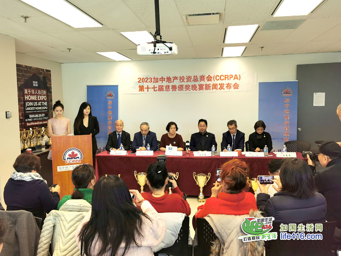 【加国生活网】加中地产投资总商会(CCRPA)今天3月15日在其总部会议厅举行新闻发布会,向社会宣布将于2023年4月15日举办一年一度有地产界 “奥斯卡颁奖晚会”之称的《CCRPA 17th Anniversary Awards Charity Gala - 顶尖经纪及地产院士慈善颁奖晚宴》,届时将有超过一千名地产精英及其高端客户,金融名家,商界大佬,政界名流,社团侨领参加这一盛会,内容包括表彰优秀、慈善捐助、商会精英交流及才艺表演等。