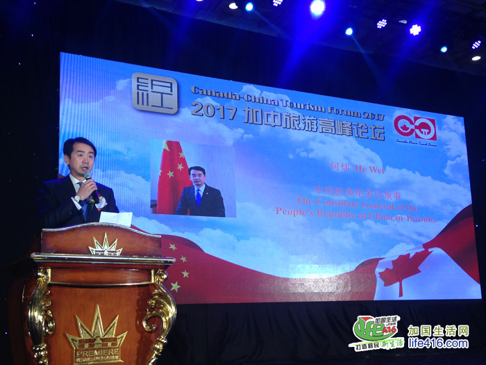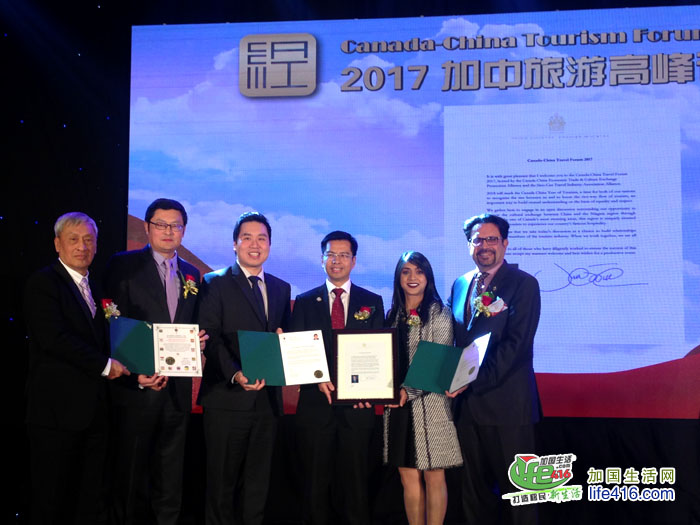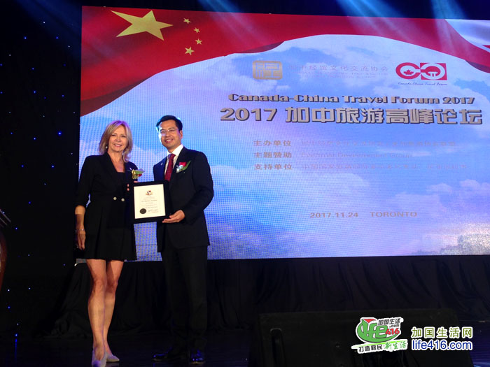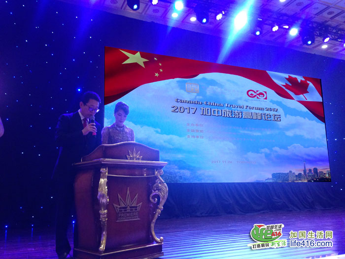 【加国生活网】2017加中旅游高峰论坛于11月24日晚在多伦多钓鱼台国宴成功举行。本次论坛的主题是“2018年加中旅游年的机遇暨尼亚加拉地区旅游与投资”。中国驻多伦多领事馆总领事、联邦参议员、联邦国会议员等三级政府官员,加拿大安省各地旅游管理部门、旅游服务机构、旅行社以及投资界人士、企业家、知名学者以及媒体单位近600位嘉宾出席了本次活动。与会者就2018年加中旅游年对两国旅游经贸文化发展将会带来的影响等议题进行交流, 了解中国资本投资的成功案例,共同探讨加中旅游发展的新趋势、新特点,以迎接2018加中旅游年的到来。