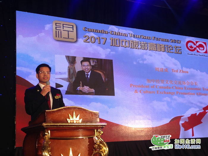 加中经贸文化交流协会会长周建成博士在本次论坛欢迎词中讲到,即将到来的2018年对于加中两国来讲有着特殊的意义——特鲁多总理在2016年访华期间和中国政府达成一致,将2018年定为“加中旅游年”。旅游业是国与国之间建立更紧密关系的最直接的方式之一,不仅通过两国政府和商业机构,更能通过两国人民直接建立友好关系。加中两国正是基于这样的基础达成协议,2018加中旅游年一定能更好更广泛地促进两国之间经济、文化等全方位的交流和发展。