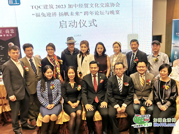 【加国生活网】 “知识跨年”现在已经成为广受欢迎的跨新年方式!2022年11月18日上午11am,加中经贸文化交流协会在樽宴大酒楼隆重举办跨年论坛启动仪式,正式宣布由加中经贸文化交流协会(CCEA) 主办,TQC建筑冠名赞助的 “TQC 建筑 2023 福兔迎祥 扬帆未来 跨年论坛与晚宴” 将于2022年12月18日在Richmond Hill 钓鱼台国宴举办。80多位本地地产、商界、金融界精英、经济界知名学者、社团领袖,高校校友会长代表,媒体等将齐聚一堂。多伦多大学博士讲师、加中经贸文化交流协会副会长、星岛1电台主持人韩笑博士主持启动仪式。