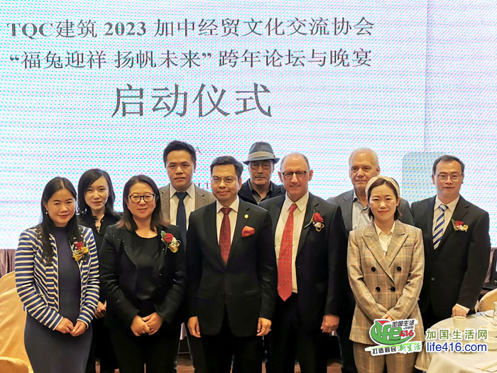 随后,加中经贸文化交流协会执行会长曾诚介绍本次论坛的筹备情况。曾会长提到第三届跨年论坛是疫后第一次的线下跨年论坛,难度大,时间紧。但协会已成功举办过“2017加中旅游高峰论坛”和“2018 加中教育高峰论坛”,团队过去三年每年举办10场大讲座,因此经验丰富,信心十足。 “TQC建筑 2023 福兔迎祥 扬帆未来 跨年论坛与晚宴”筹备工作进展顺利,今天启动仪式的举办是一个里程碑。曾会长提到本次跨年论坛与晚宴几个特点: