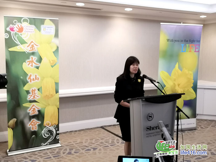 加拿大防癌协会捐赠总监 Nancy Yarmel 非常感谢金水仙基金会每年主办《金水仙慈善晚宴》,22年来长期不遗余力为加拿大防癌协会筹款。