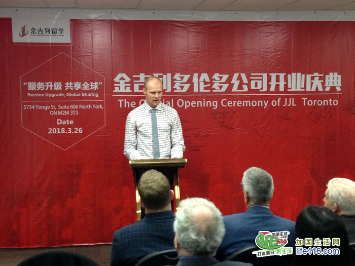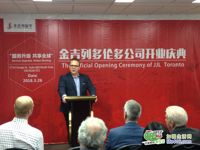 “金吉列留学作为中国留学行业的佼佼者,多年来与众多加拿大院校保持良好的合作,每年都会输送上万名优秀的中国学子赴加拿大留学,相信多伦多公司的建立将进一步帮助在加拿大留学的中国学生更好的完成自己的梦想,促进中加教育合作交流。”Sheridan College代表Mike Allcott先生在致辞中表达了对金吉列多伦多公司未来的美好祝愿。