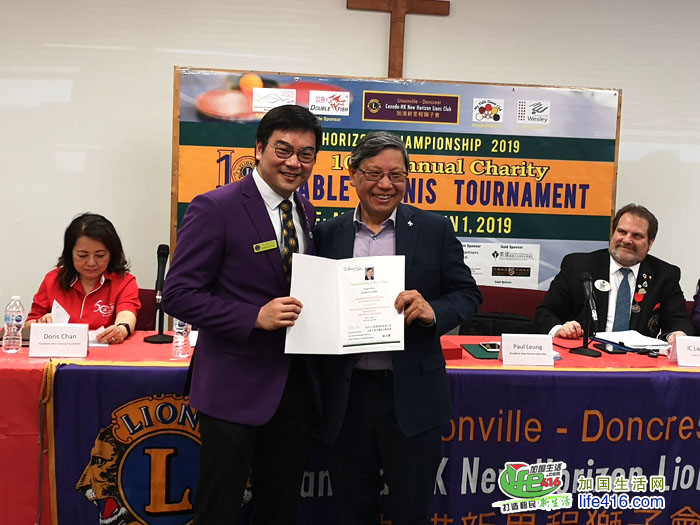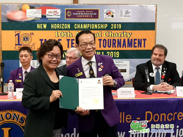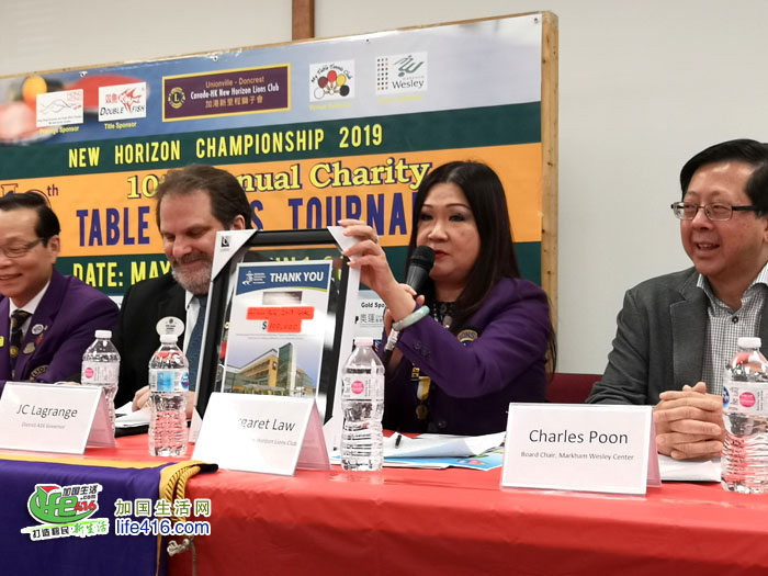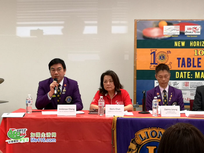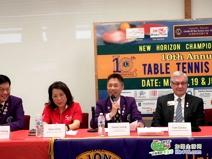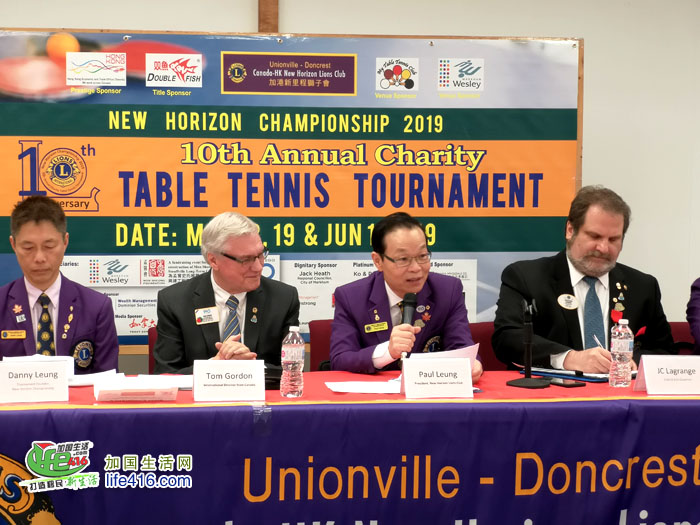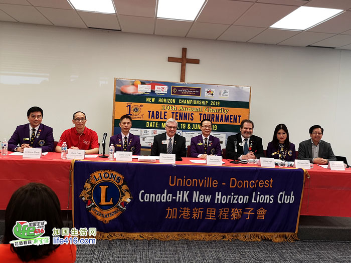 【加国生活网】加港新里程狮子会于2019年4月17日举行新闻发布会,宣布将于2019年5月18至19日在万锦市My Table Tennis Club、 6月1日在万民卫斯理社区服务中心举办第十届慈善乒乓球锦标赛。