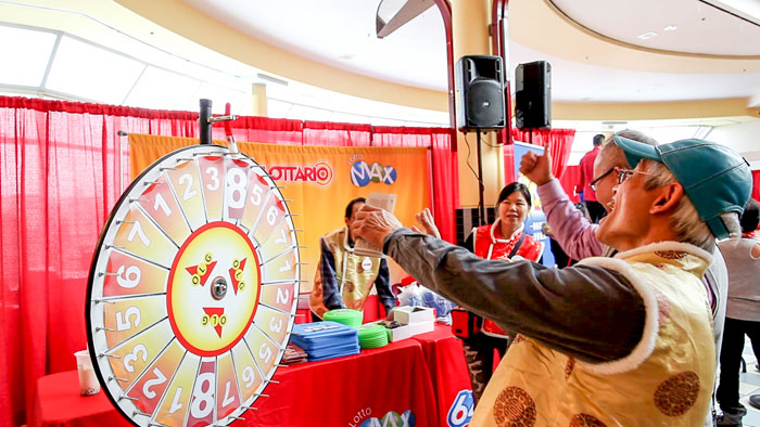 OLG在这两个商场的表演台附近设置摊位,摊位人员穿着红色和金色的传统农历新年服装,喜气洋洋。参加新春活动者需为 18 岁及以上,他们可以转动巨大的幸运轮,每次转动都会获赠精美奖品,包括品牌水瓶、新年冰箱磁力贴、手机座、靠垫、飞盘、太阳眼镜和彩票兑换劵。大奖是OLG彩票礼品包,内有多款OLG彩票产品,让顾客试玩。