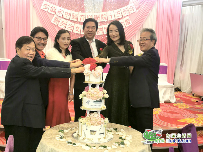 多伦多中国音乐学院在鸿福大酒楼举行建院15周年及分校庆典晚宴,宴开三十多席,多伦多各界300多人出席