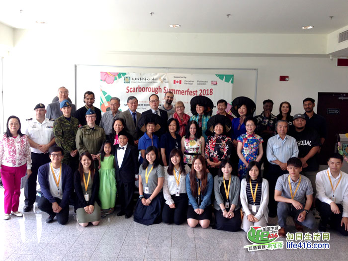 “士嘉堡夏日嘉年华”主办方、合作伙伴、表演者及协助筹办的暑期生和来自香港的实习生等众嘉宾合影