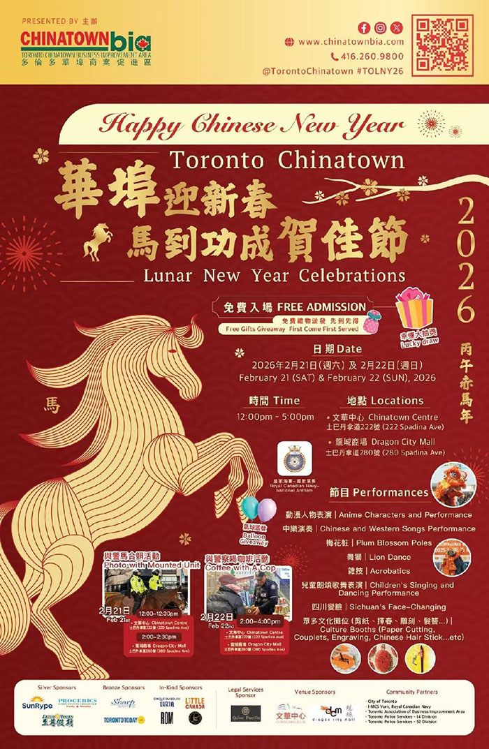 多伦多中区华埠2026春节庆祝活动将于2月21日及22日举行(组图)