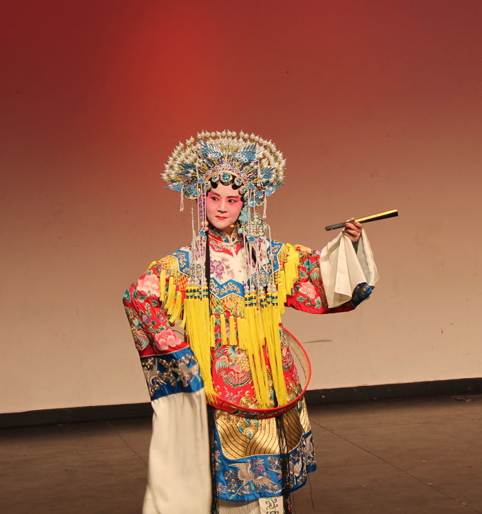 当天演出的京剧节目不仅有《沙桥饯别》、《借东风》、《贵妃醉酒》、《杨门女将》《凤还巢》《赵氏孤儿》《状元媒》《穆桂英挂帅》《四郎探母-坐宫》等经典名段,还有大家耳熟能详的《沙家浜-智斗》、《智取威虎山》现代京剧名段。