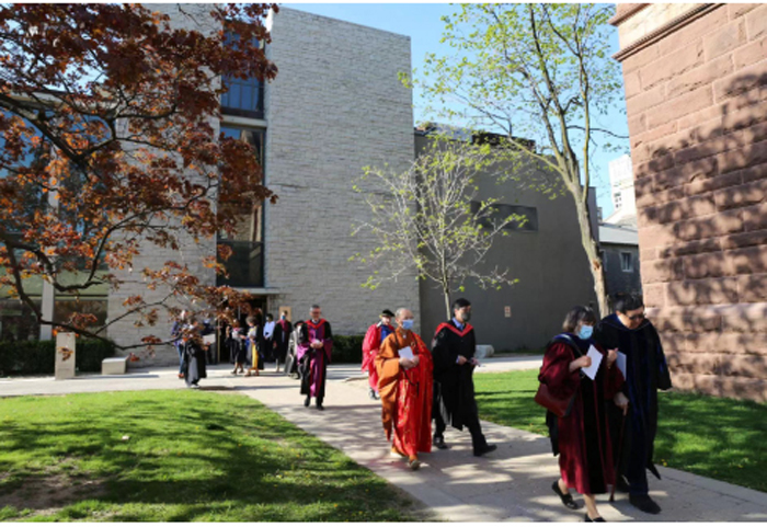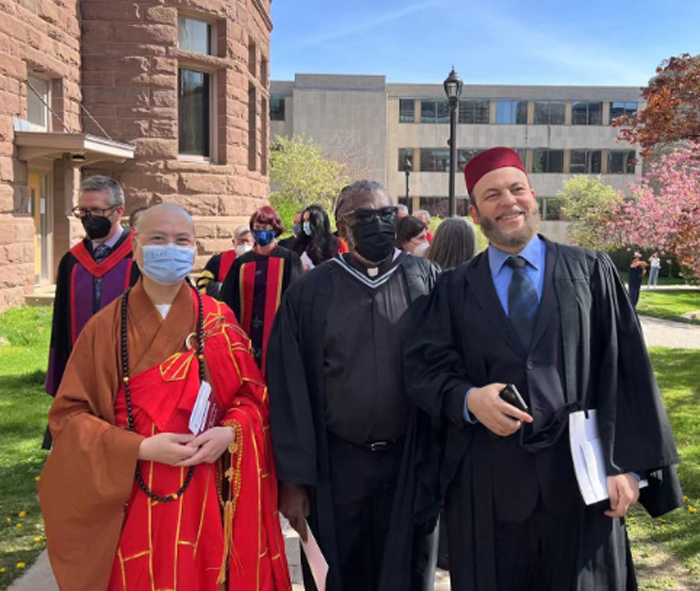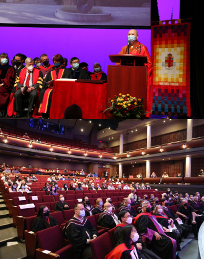 【加国生活网】2022年5月12日下午4时,加拿大佛教会会长、湛山精舍住持达义大和尚,应多伦多大学伊曼纽尔学院(University of Toronto Emmanuel College 邀请,代表佛教界参加研究生和博士生毕业典礼,并为大众诵经祈福。大和尚是多伦多大学100多年来首位身披祖衣,代表汉传佛教登上研究生和博士生毕业庆典的高僧,意义深远。