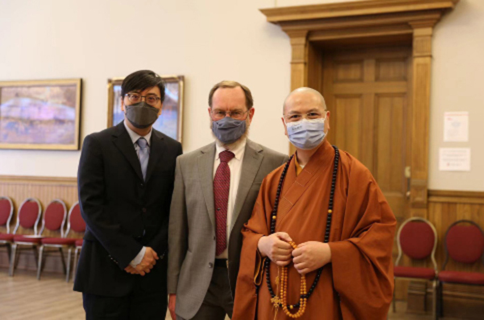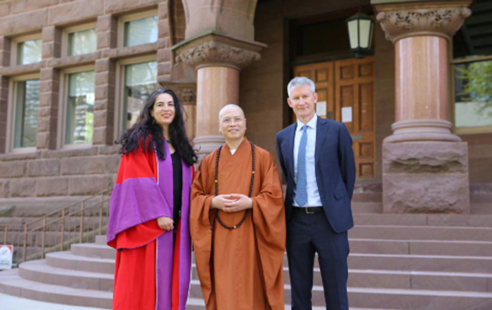 加拿大佛教会会长达义大和尚今次作为佛教界的代表,荣登多伦多大学宗教学院,为大众祈福,意味著中国汉传佛教已走进了加拿大的学术殿堂,开创了汉传佛教在加拿大高等院校之先河。相信今后汉传佛教文化在多伦多大学会得到更大的影响和成就。