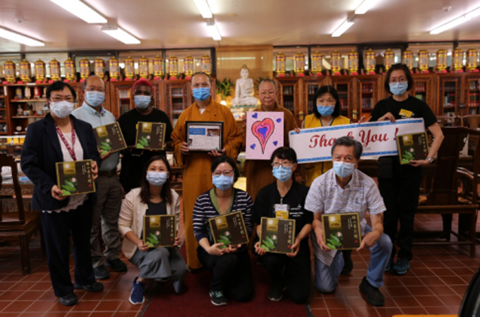 9月8日,为了感谢湛山精舍长期以来对耆老的关心和关爱,耆辉护理院、孟尝护理院、耆乐护理院三家护理院的代表又一起来到湛山精舍颁发感谢状,感谢湛山十多年来始终如一关心老人家,和为长者们精心准备中秋礼物。养老院的老人家们还亲自画了一颗饱含感恩之情的“爱心”赠送给湛山。