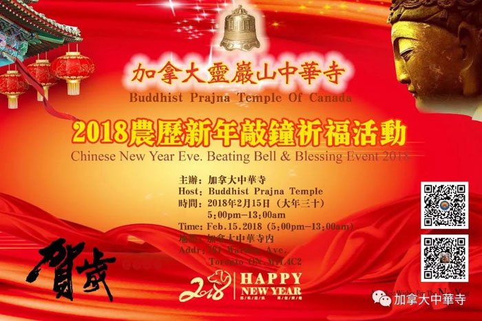 加拿大中华寺将举行2018除夕撞钟及新年祈福法会