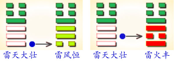 有一日,张父和白云道长谈论当今时事,针对何人可为太子,张父起了一卦“雷天大壮”。若初爻动,“雷天大壮”变“雷风恒”。若二爻动,“雷天大壮”变“雷火丰”。初爻动,从阳爻变阴爻不得位,因为老大已被废为庶人;二爻动,同样从阳爻变阴爻却得位,且震木生离火,故张父就认为老二必成太子。白云道长则持反对意见,认为得“雷天大壮”卦者,运势过于强盛,宜心平气和,谨慎行事,否则必生过失。特别是二爻动,盛衰无常,须警惕事态朝相反方向发展。