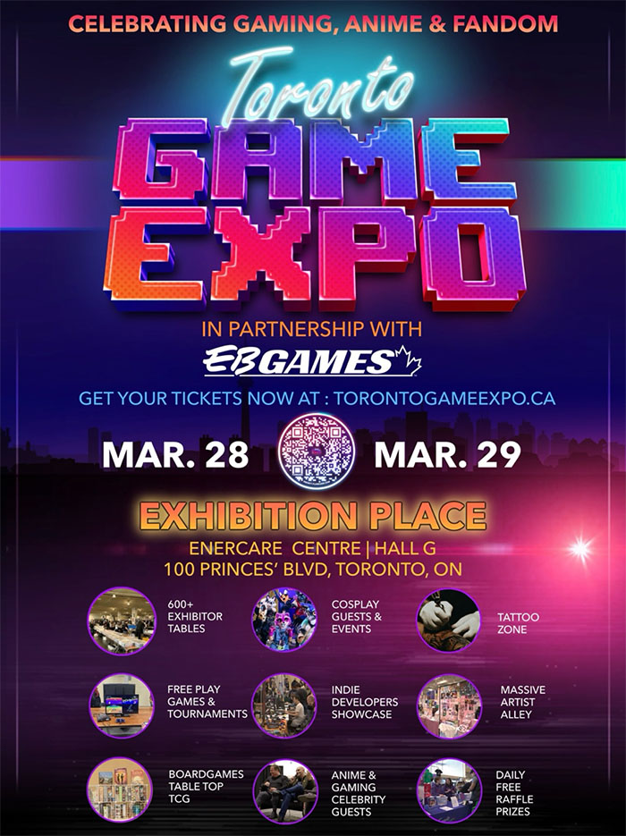 【加国生活网】喜欢玩游戏的朋友们注意了,本周六在Exhibition Place有一个Toronto Game Expo 多伦多游戏博览会,届时来自加拿大的视频游戏和极客文化供应商将在数百个桌子上出售视频游戏、棋盘游戏、收藏品、艺术品等,现场甚至还有玩游戏中大奖的环节和免费玩游戏区域,不要错过。票价(另税):周六$35、周日$30、周六和周日两天$50。