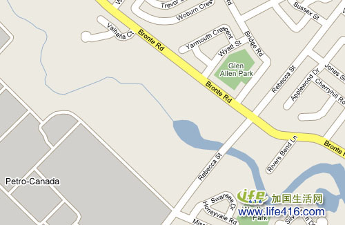 多伦多市中心以西35公里处,沿QEW的111号出口向南开,在Rebecca St & Bronte Rd 西边夹角,河湾胖起来的地方。入口在Bronte Rd上,Rebecca St以北大约50米,非常非常小,很难找。建议你把车停在居民区路边再走下去,平时非常幽静。西北角是petro canada公司的停车场。