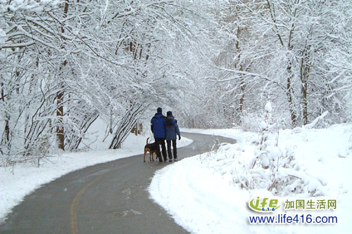 每天,有许多市民在这里或跑步骑自行车,或谈恋爱溜狗。就是在这段Trail 里,曲径通幽,就是在这段Trail里里,春季花香四溢、夏季生机盎然、秋季满目枫红、冬季雪如仙境。