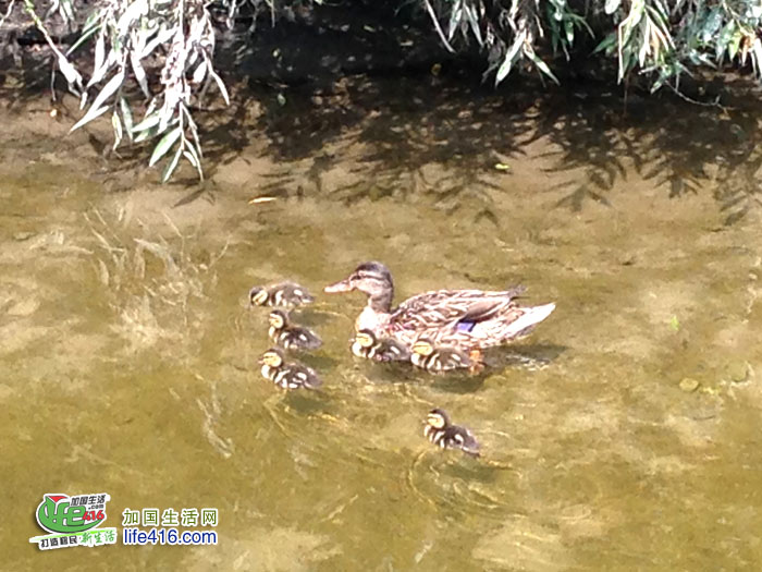 加国生活网小编最新爆料:多伦多Edwards Gardens 爱德华公园里的那对野鸭(Mallard Duck,又称绿头鸭)生baby啦,一共6只。内什么,这对夫妻生完后,雌的负责带娃养家,雄的负责貌美如花……这个Civic Day长周末,如果你感觉四处奔波太累,不如就近去爱德华公园看看吧: