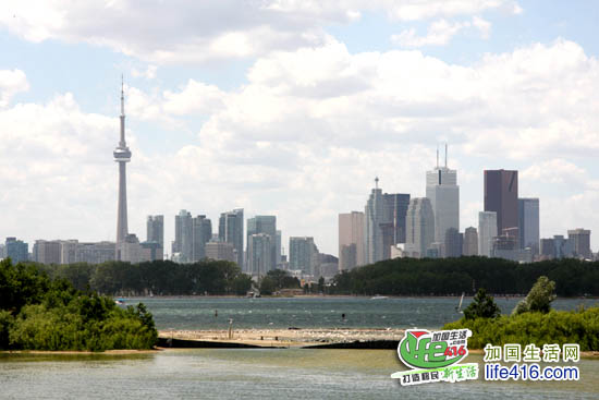 不用坐渡轮,在Tommy Thompson Park 就可以看到包括CN Tower 在内的漂亮的多伦多Skyline 湖边风景线