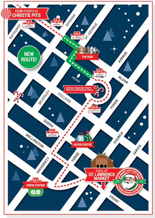 每年的巡游路线都在微调,今年的路线与去年略有所不同,游行队伍将于11月24日星期日下午12点半从CHRISTIE PITS出发,沿着BLOOR一直走到ST. George后,再向右拐走到Hoskin Ave,再沿着Hoskin Ave 一路走到AVENUE,沿着大圆圈转半圈后,再沿着University Ave一路走到WELLINGTON,再向左转走到YONGE,在YONGE街一路向前走到UNION STATION的FRONT STREET,最后在ST. LAWRENCE MARKET结束。