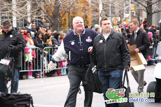 咱们的市长大人福特(这位备受争议的市长因患癌症于2016年3月22日去世)也来参加圣诞老人大游行,他拿着大把糖洒向人群(八卦一下,旁边那位小男生,和他挺像的,难道是他儿子?)