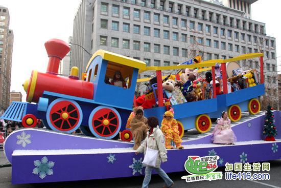 小编拍了张远景照片。等拍完了,小编突然想起,这个花车应该是圣诞婆婆的花车啊。拉近镜头刚想拍,婆婆转过头,向另一边挥手了,眼睁睁地看着婆婆的花车浮云般地漂走了……