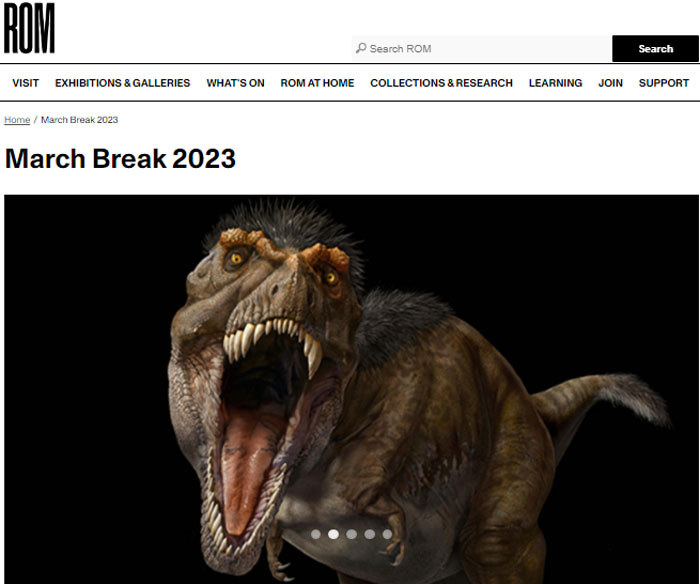 【加国生活网】The Royal Ontario Museum(ROM)在2023年March Break 的活动其实是从3月11日至3月19日举行的,活动丰富多彩,包括艺术、文化和自然历史等系列主题,展示了野生动物为季节变化所做多种方式准备,以及世界各地的春季文化庆祝活动,让孩子在娱乐的过程中学习到各种知识。买了门票进门后,就可以免费参加所有活动。ROM的March Break 期间的特别展览是《The Ultimate Predator》,展览将以全新的视角介绍恐龙时期的“暴君”霸王龙,通过介绍全尺寸霸王龙模型、多感官活动和互动让学生了解更多有关霸王龙的信息,保证能让孩子们度过过欢乐的March Break 时光!