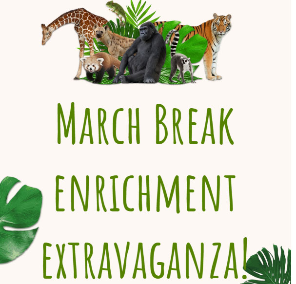 【加国生活网】大家在选择March Break 活动的时候,如果你的孩子喜欢动物的话,不妨去多伦多动物园看看,2023年的活动主题是Enrichment Extravaganza 丰富的盛会,让多伦多动物园吉祥物带着孩子们去动物园探险,认识长颈鹿、大猩猩等动物朋友,具体活动安排如下: