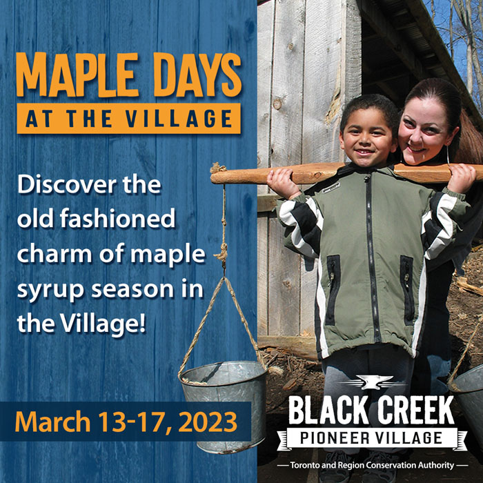 【加国生活网】在多伦多生活得越久,就越能感受到这个Metro大都会的韵味。许多人可能不知道,在这座时尚现代的城市里,有一处19世纪的的小村庄,里面的“居民”和建筑全都保持19世纪的风格。2023年March Break期间,这个名为“Black Creek Pioneer Village”的小村庄为孩子们准备了一个特别有意思的活动—MAPLE DAYS AT THE VILLAGE。盛装打扮的“村民”除了将会带领大家探索将枫糖从树上带到餐桌上所需的古老技巧外,还会让大家享受欢乐的木偶戏、民间音乐,以及在热闹的糖屋派对中跳跳舞,并品尝真正的枫糖浆。这个活动在网上购票即可报名(请点击以下网站链接),票价(另税):成人$22、60岁以上老人或16岁以上学生$20、3-14岁儿童$18。
